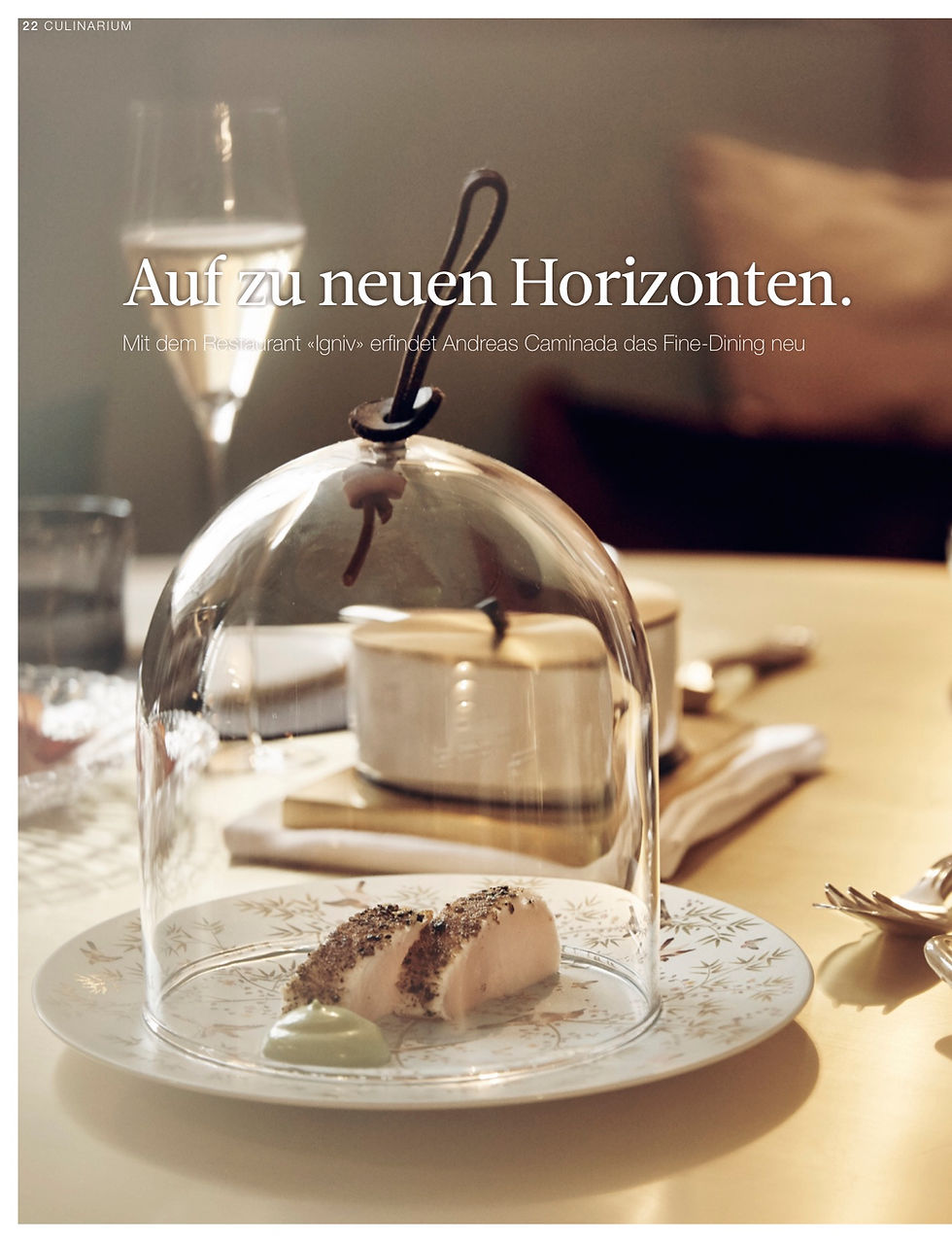 Wenn in der gehobenen Gastronomie Kon- ventionen gebrochen werden, dem Fine-Dining das Wort «Sharing» hinzugefügt und eine exzellente Küche geboten wird, kann nur einer dahinterstecken: Andreas Caminada. Der Bündner Spitzenkoch gilt als einer der besten seiner Gilde. Seine Küche im «Schloss Schauenstein» in Fürstenau ist mit drei Guide-Michelin-Sternen und 19 Punkten von Gault & Millau ausgezeichnet. Im Dezember 2015 eröffnete er ein weiteres Restaurant unter der Zweitmarke «Igniv» in der ehemaligen «Äbtestube» im Grand Resort Bad Ragaz. Das Medienecho war gewaltig und sowohl Gäste als auch Kritiker zeigten sich begeistert.